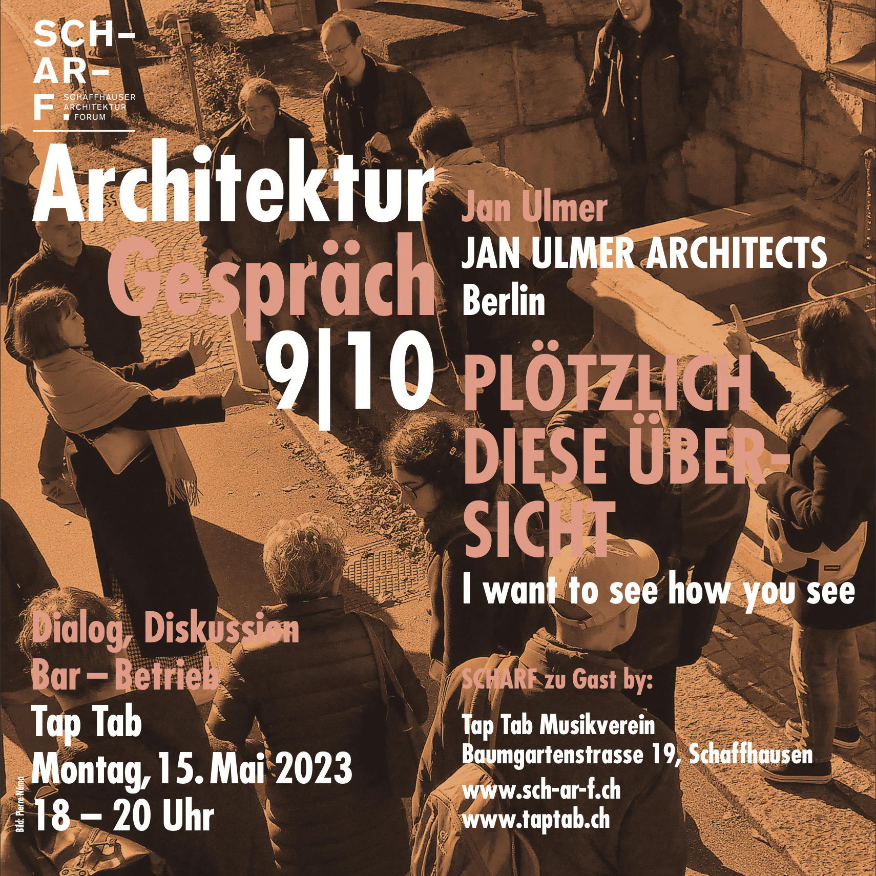 Das Schaffhauser Architektur Forum veranstaltet von September 2022 bis Juni 2023 eine monatliche Gesprächsreihe über Architektur, Städtebau und Baukultur im TapTab. Beispiele aktueller, öffentlich interessanter Projekte werden im Dialog pointiert und transparent veranschaulicht und zeigen die Haltung und das Verständnis der eingeladenen Fachpersonen in Bezug zum vieldiskutierten Qualitätsbegriff.