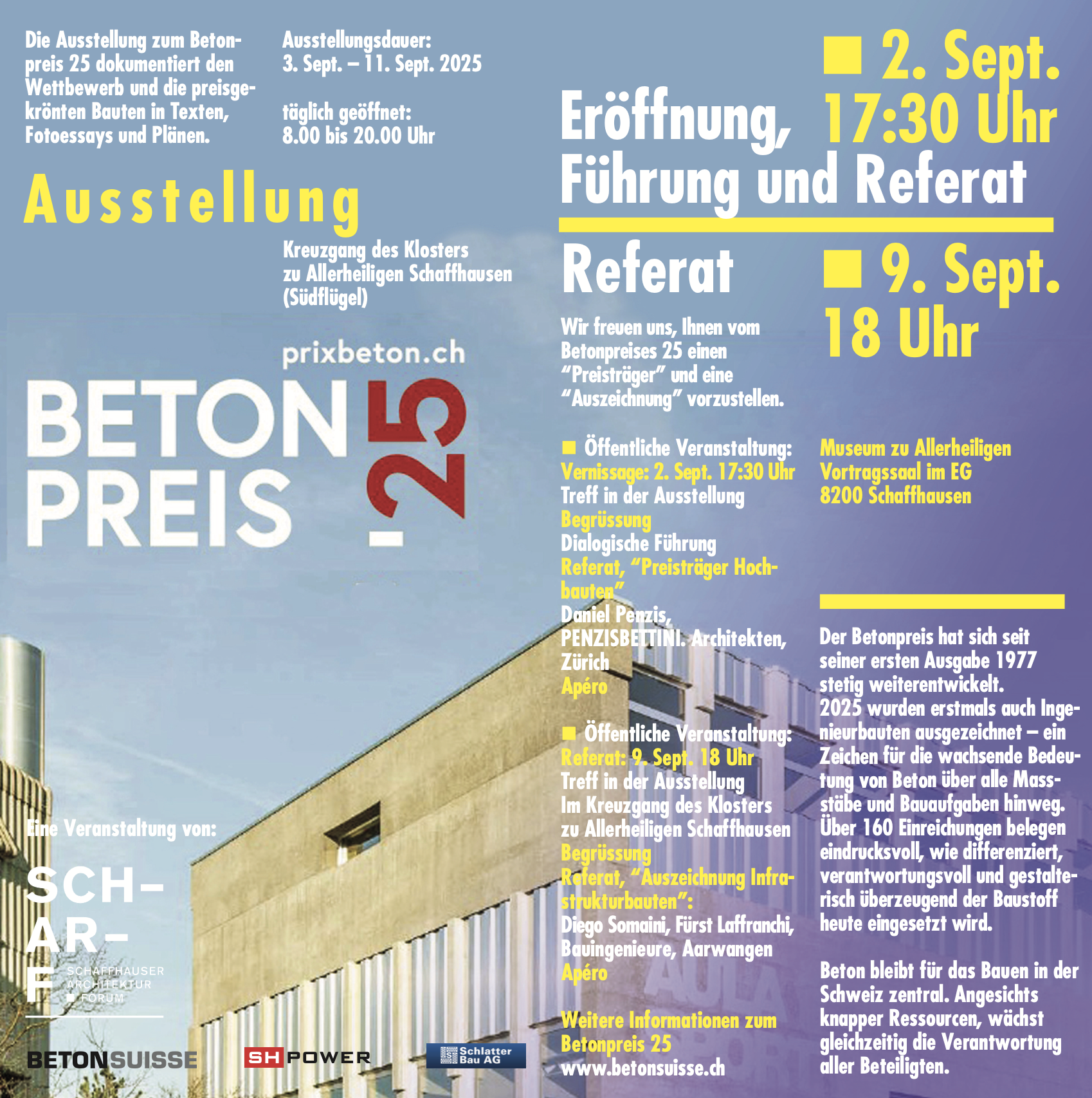 Download Einladungskarte → Ausstellung Betonpreis 2025 in Schaffhausen