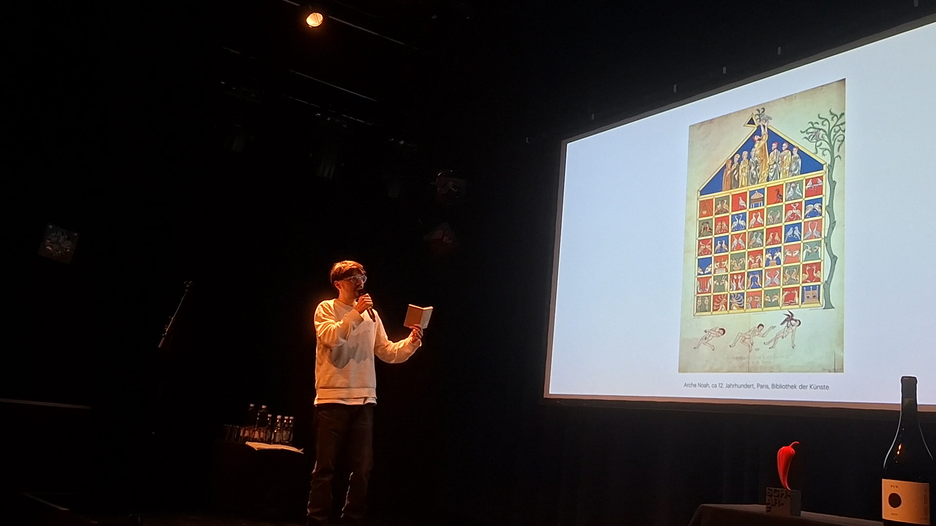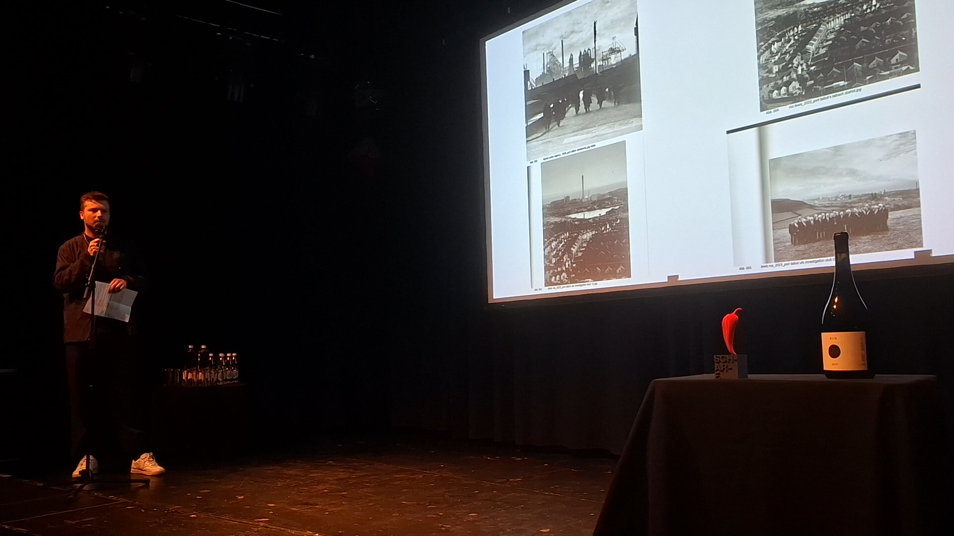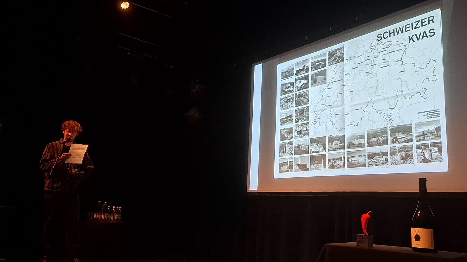 Architekt Timo Bauer aus Zürich durfte den SCHARF-Peche Kucha-Wanderpreis schon zwei Mal mit nach Hause nehmen. Er brachte ihn nach Schaffhausen zurück. Bei einem dritten Sieg würde er in seinen permanenten Besitz gelangen. Einmal mehr erzählte Timo Bauer von seinen Forschungsarbeiten rund um historische Industrieanlagen. Dieses Mal befasste er sich mit künstlichen Landschaften «zwischen schwarz, braun und grün». Er betrachtet die von ihm untersuchten Gebiete der Kohlegewinnung, der Stahlverarbeitung und Schiffswerften im heutigen Zustand, aber auch anhand historischer Fotos. Diese zeigen eine eigene Welt und eine eigene Ästhetik, welche das Verständnis und die Interpretation des vorgefundenen entscheidend mitprägen. Wenn man in diesen heute sozial oft stark
