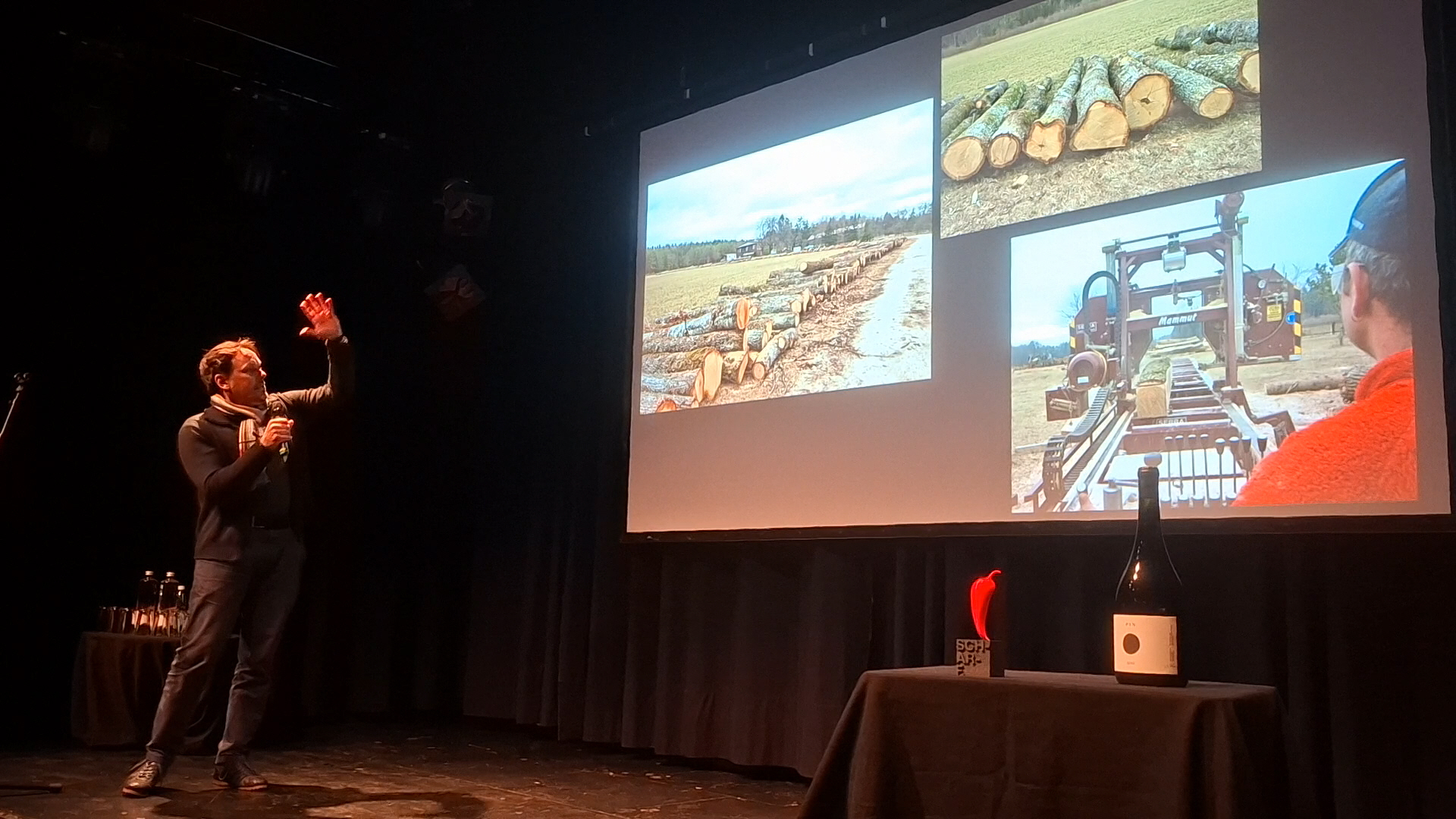 Fotograf und Architekt Roland Bernath aus Zürich stellte in rascher Folge jüngere Projekte vor, eines von ihnen vom Büro Bernath+Widmer, die anderen beiden Sujets für seine Kamera. Der Titel der Präsentation, «Konzeption und Konsequenz», wies auf klare, mit Entschlossenheit verfolgte Ideen hin. Und wer plant die Planung? Bei diesen Beispielen waren es die Umstände und vor allem der Standort und verfügbare, ortsgerechte Materialien. Für das Ferienheim Büttenhardt benutzte man Bäume aus der Umgebung; ihr Holz bestimmte, wie man baute. Beim «wohltemperierten Haus» des Büros EMI in Regensdorf ging es um einen sinnvollen Umgang mit dem Thema Reuse, also der Wiederverwendung alter Bauelemente. Und im Klanghaus wurde der Plan durch die Lage im Toggenburg und die Nutzung für Klangkultur und Musik ganz wesentlich geprägt. Fazit von Roland Bernath: «Ein starkes Konzept prägt Gebäude und die Atmosphäre. Wenn alle am gleichen Strick ziehen, kommt es meistens ziemlich gut.»