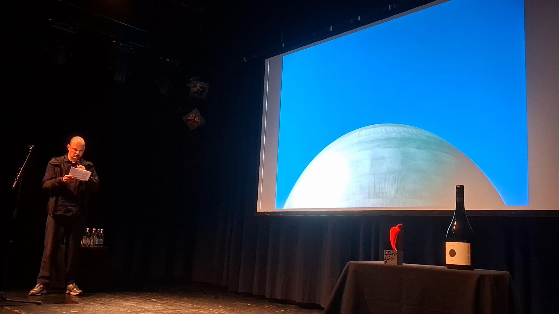 Im kleinen Saal der Tap Tab Bar in Schaffhausen wurde der Applaus für jeden Vortrag gemessen. Für den höchste Dezibel-Wert gab es eine grosse Flasche Wein und den SCHARF Pfefferschoten-Wanderpreis.