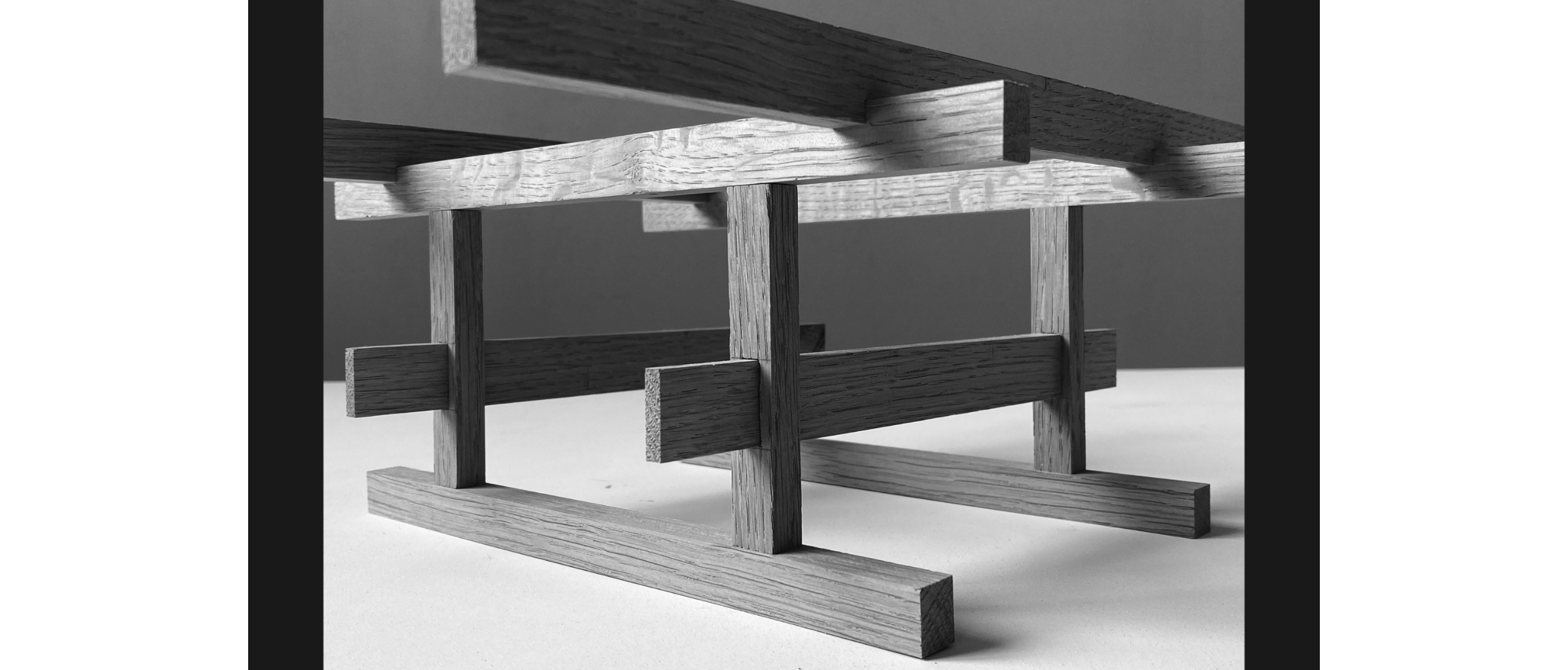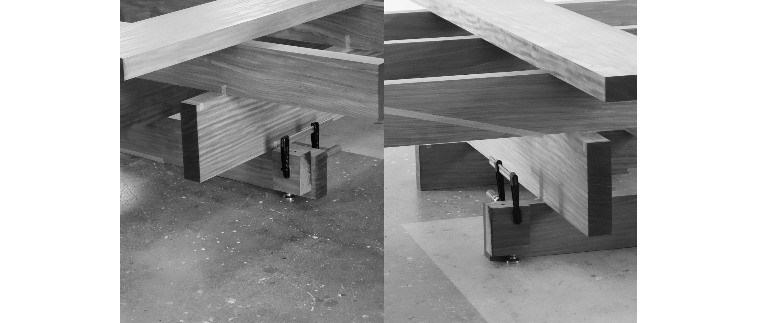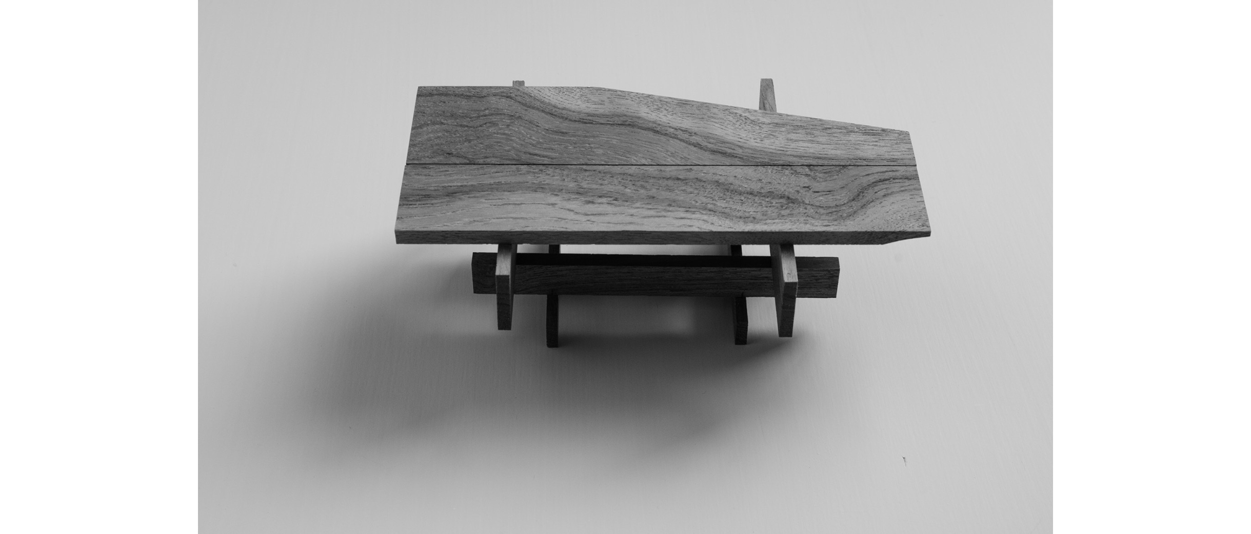 Bis ein Tisch so selbstverständlich da steht, passieren unzählige Entscheidungen und Handgriffe. Köhle lädt das Publikum ein, diesen Prozess zu begleiten. An die Besprechung mit dem Kunden bringt er bereits Modelle mit, angepasst auf den Ort, auf die spezifischen Masse. Ist die Richtung bestimmt, geht es in der Werkstatt weiter. Wie gross ist der Abstand zwischen den Balken? Wo werden die Füsse platziert, um den leicht abschüssigen Boden auszugleichen? In welchem Winkel werden die Hölzer für ausreichende Beinfreiheit abgeschrägt? Und nicht zuletzt: Lässt sich überhaupt ein geeignetes Brett aus dem Stamm gewinnen?