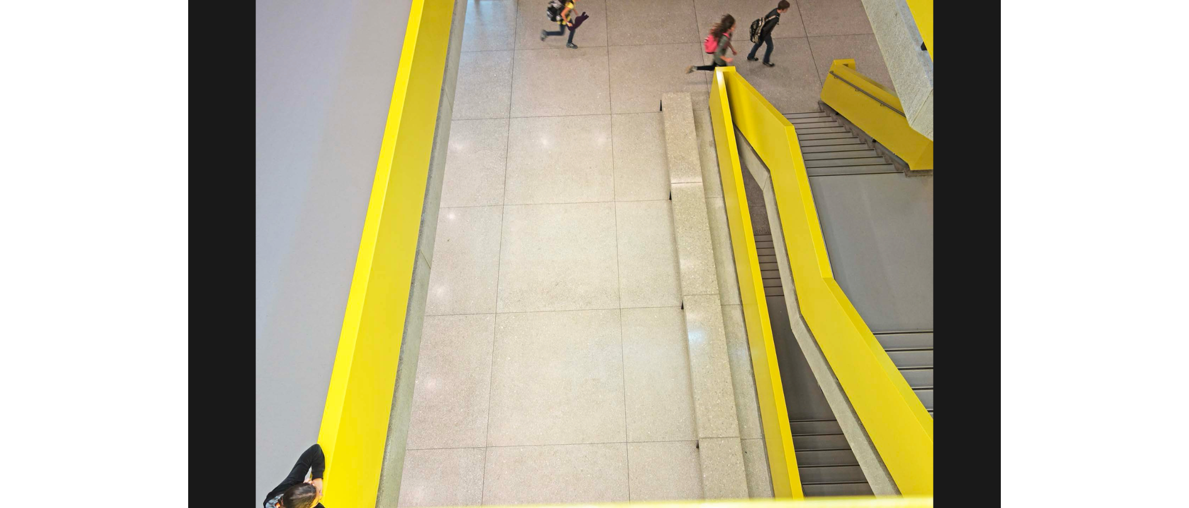 In der Schulanlage Spiegelfeld in Binningen arbeitete Köhle mit Vischer Architekten zusammen. Die Schulanlage von Rasser + Vadi, 1965 fertiggestellt, musste mit der Sanierung neue Sicherheitsanforderungen erfüllen. Ein klassisches Problem dabei: zu niedrige Treppengeländer. Köhle baute die Geländer im Atelier nach, erst im Modell wird erkennbar, dass es ein einziges, langes Band ist, das sich über alle Geschosse faltet.
